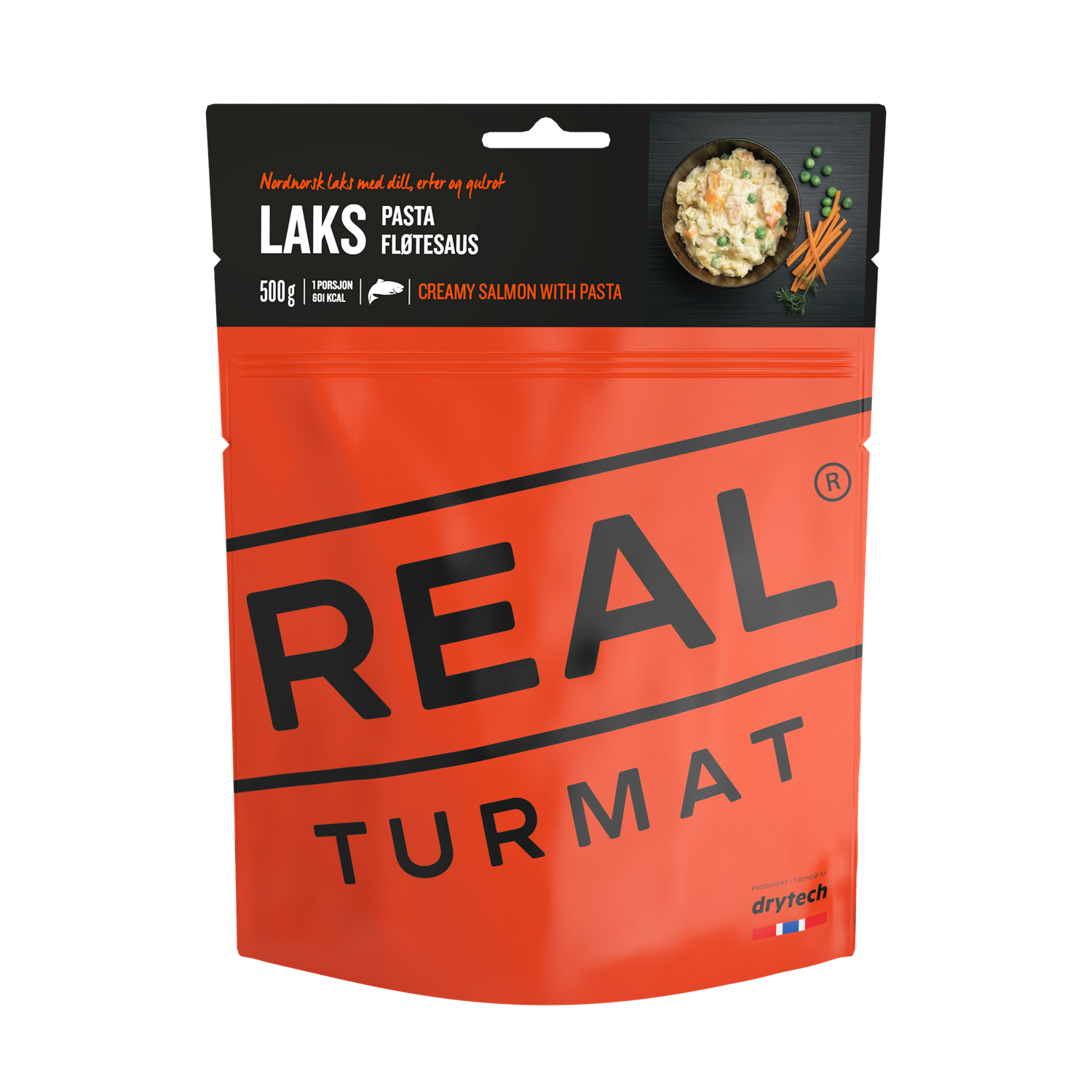 Nordnorsk laks med dill, erter og gulrot.